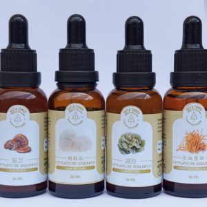 Os extratos são feitos 100% de corpos frutíferos (Cogumelos) em dupla extração com álcool de cereais, e água destilada. Com aproximadamente 30% de extrato alcoólico.