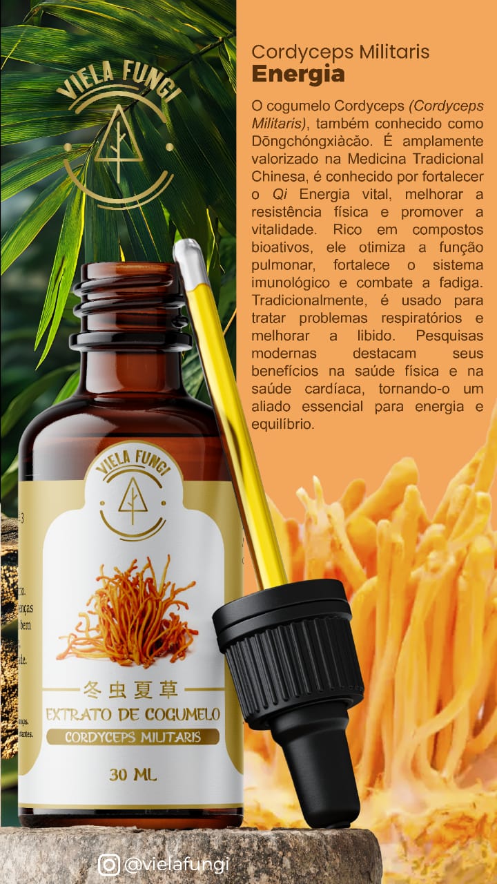 O cogumelo Cordyceps (Cordyceps militaris), Também conhecido como dōng chóng xià cǎo (冬 虫 夏 草). Amplamente valorizado na Medicina Tradicional Chinesa, é conhecido por fortalecer o Qi energia vital, melhorar a resistência física e promover a vitalidade. Rico em compostos bioativos, ele otimiza a função pulmonar, fortalece o sistema imunológico e combate a fadiga. Tradicionalmente, é usado para tratar problemas respiratórios e melhorar a libido. Pesquisas modernas destacam seus benefícios no desempenho físico na saúde cardíaca, tornando-o um aliado essencial para energia e equilíbrio.
